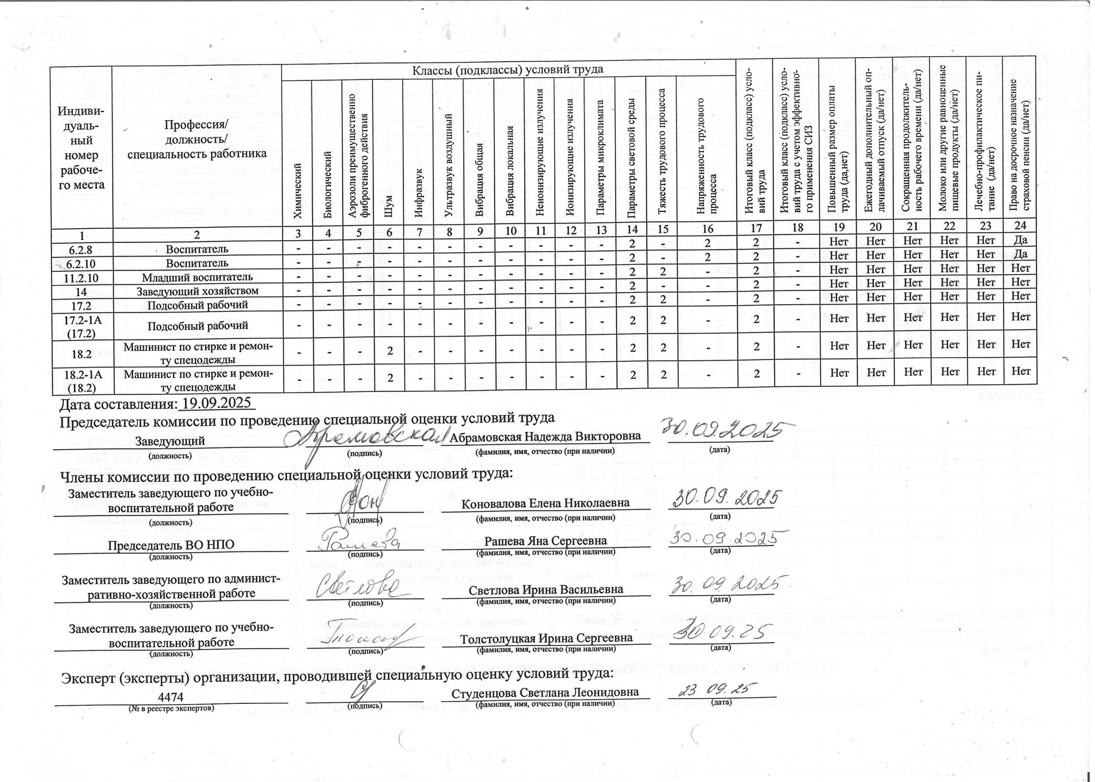 Сводная ведомость результатов проведения специальной оценки условий труда 2025 год