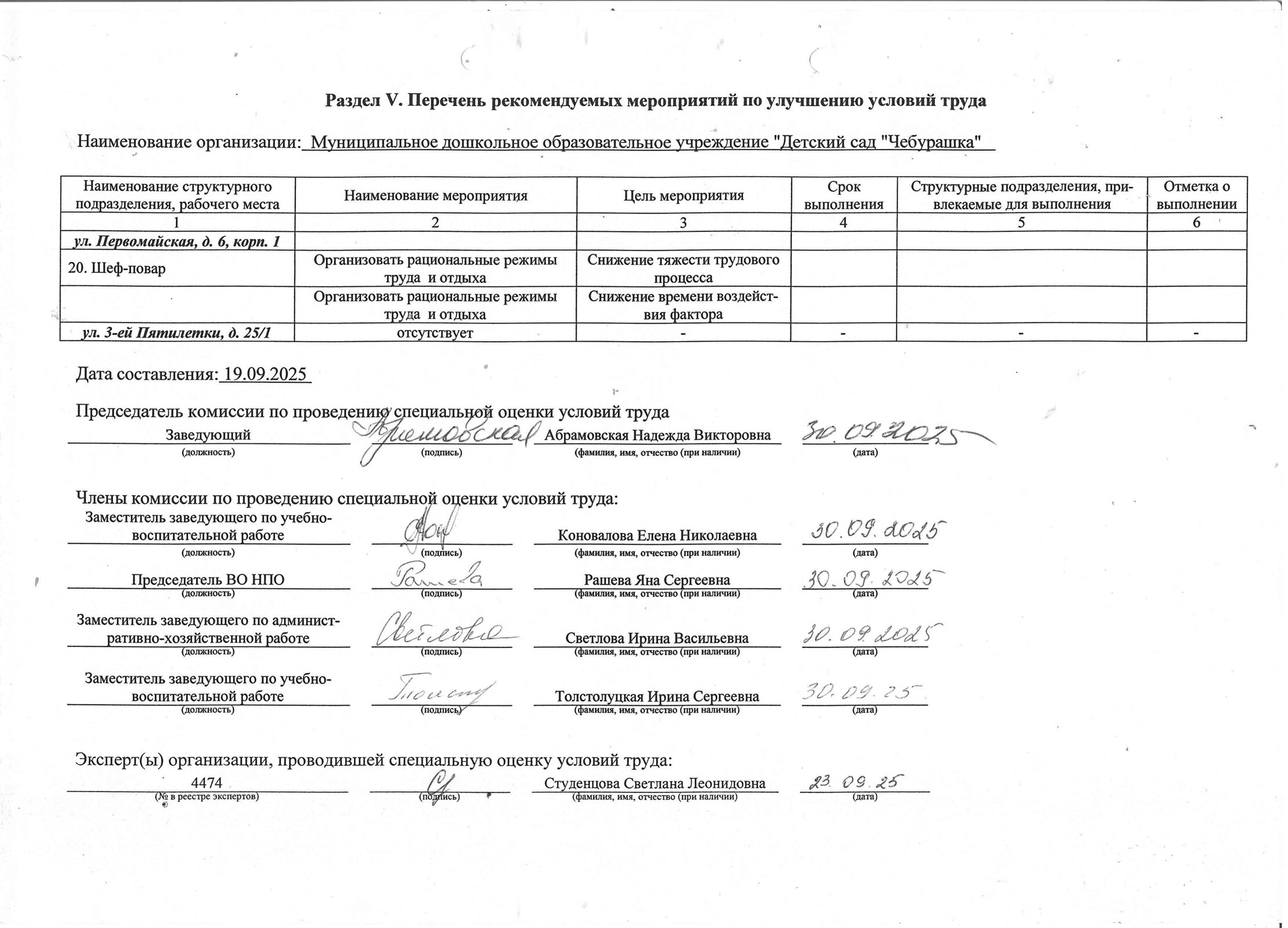 Перечень рекомендуемых мероприятий по улучшению условий труда 2025 год