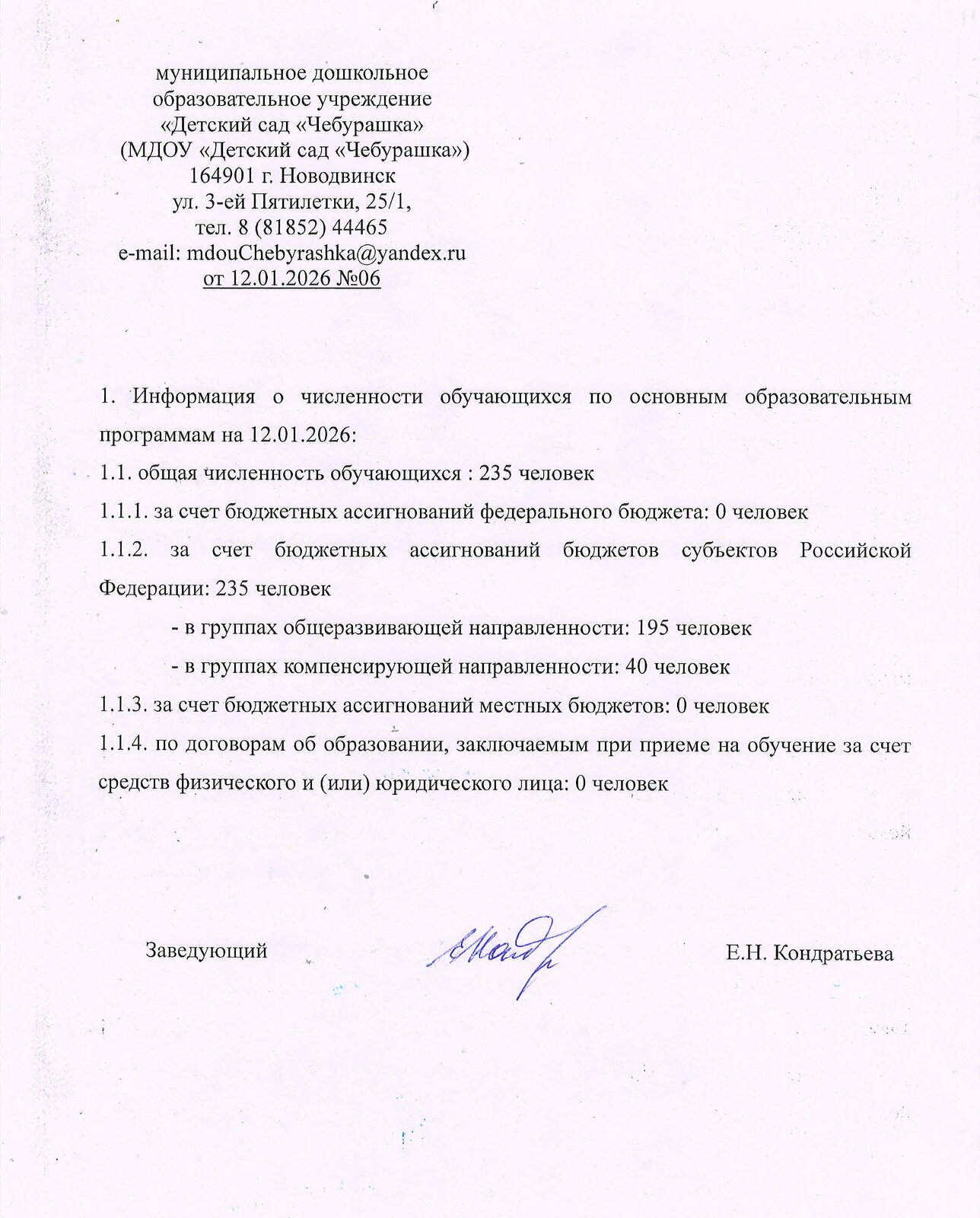 общей численности обучающихся - 235 обучающихся на 12.01.2026