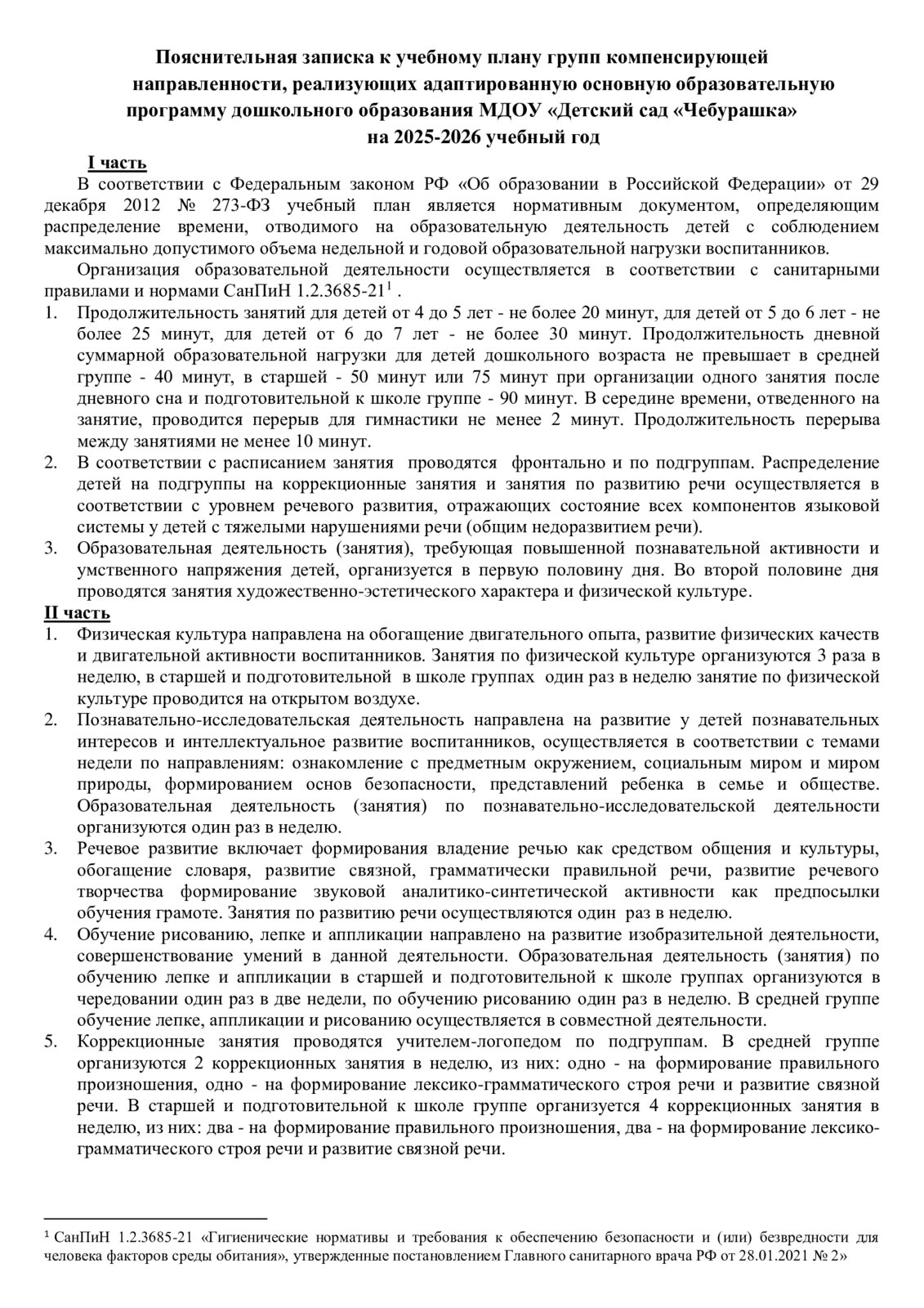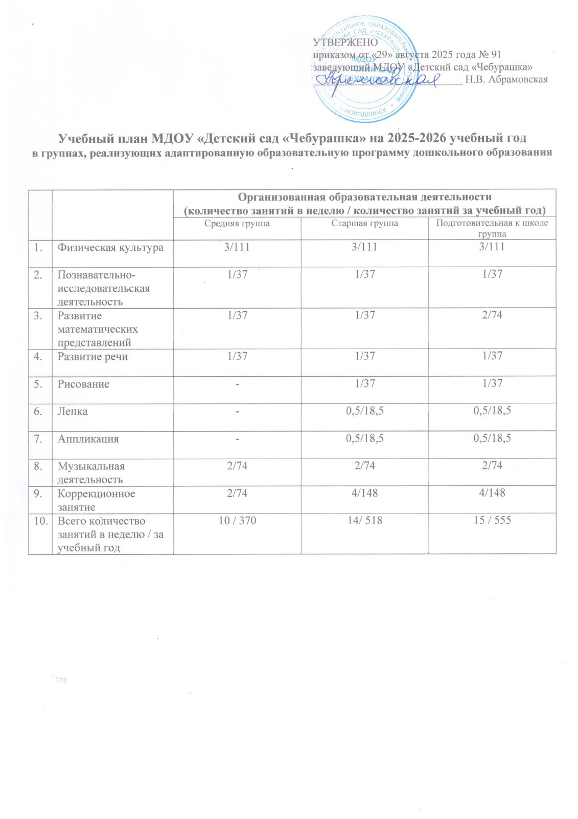 Учебный план в группах, реализующих адаптированную образовательную программу