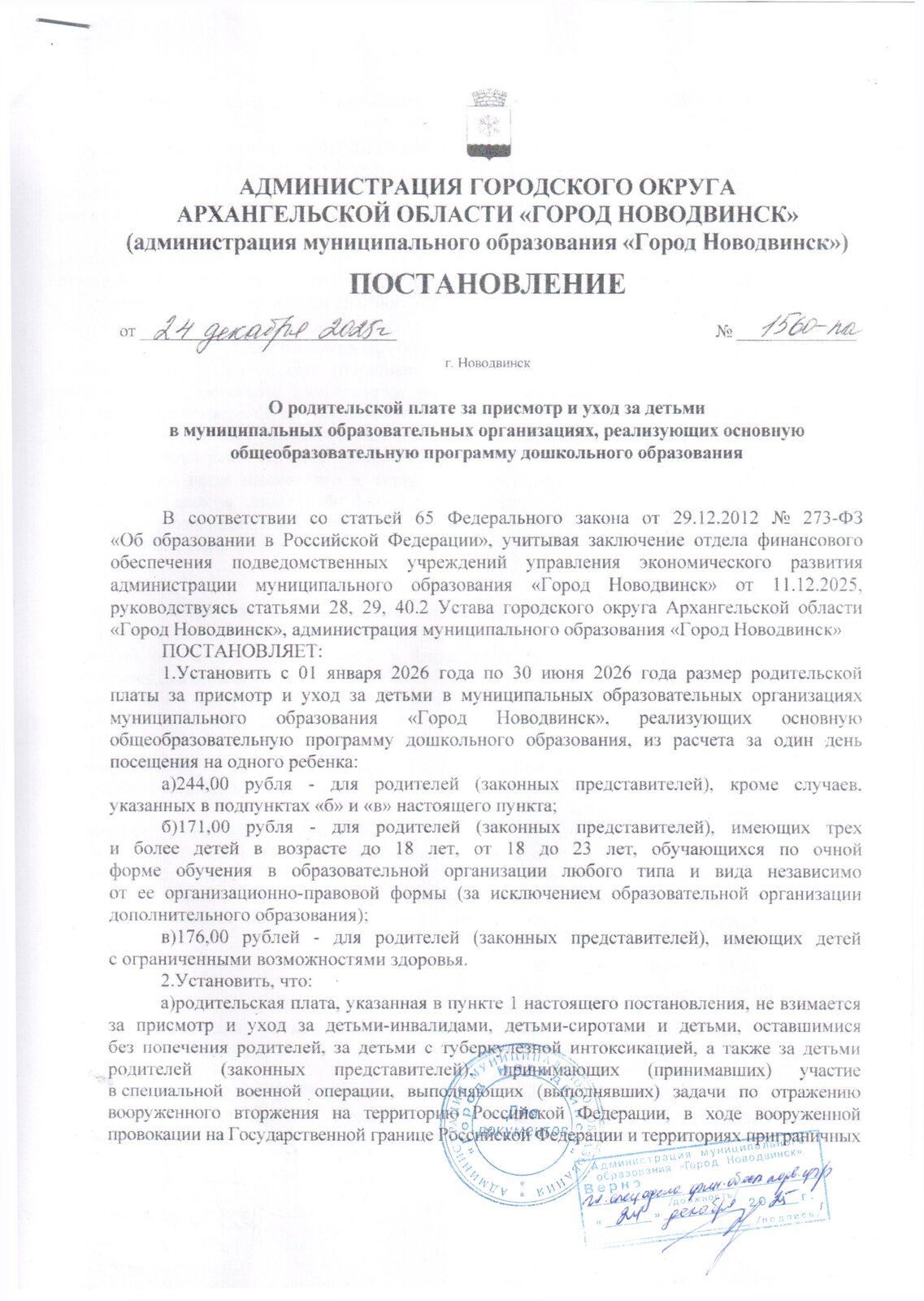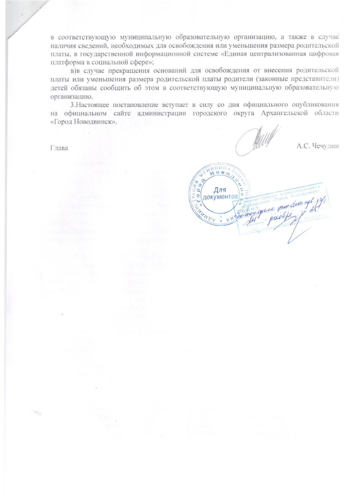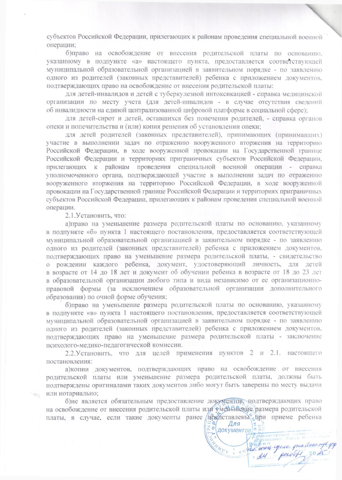 Документ об установлении размера платы, взимаемой с родитителей (законных представителей) за присмотр и уход за детьми, осваивающими образовательные программы дошкольного образования