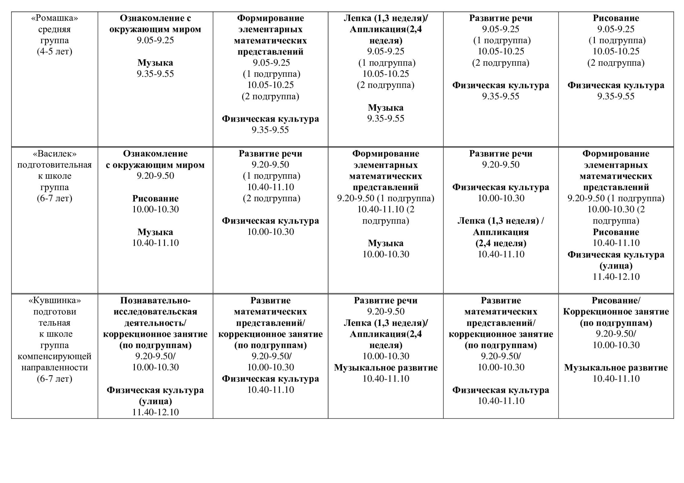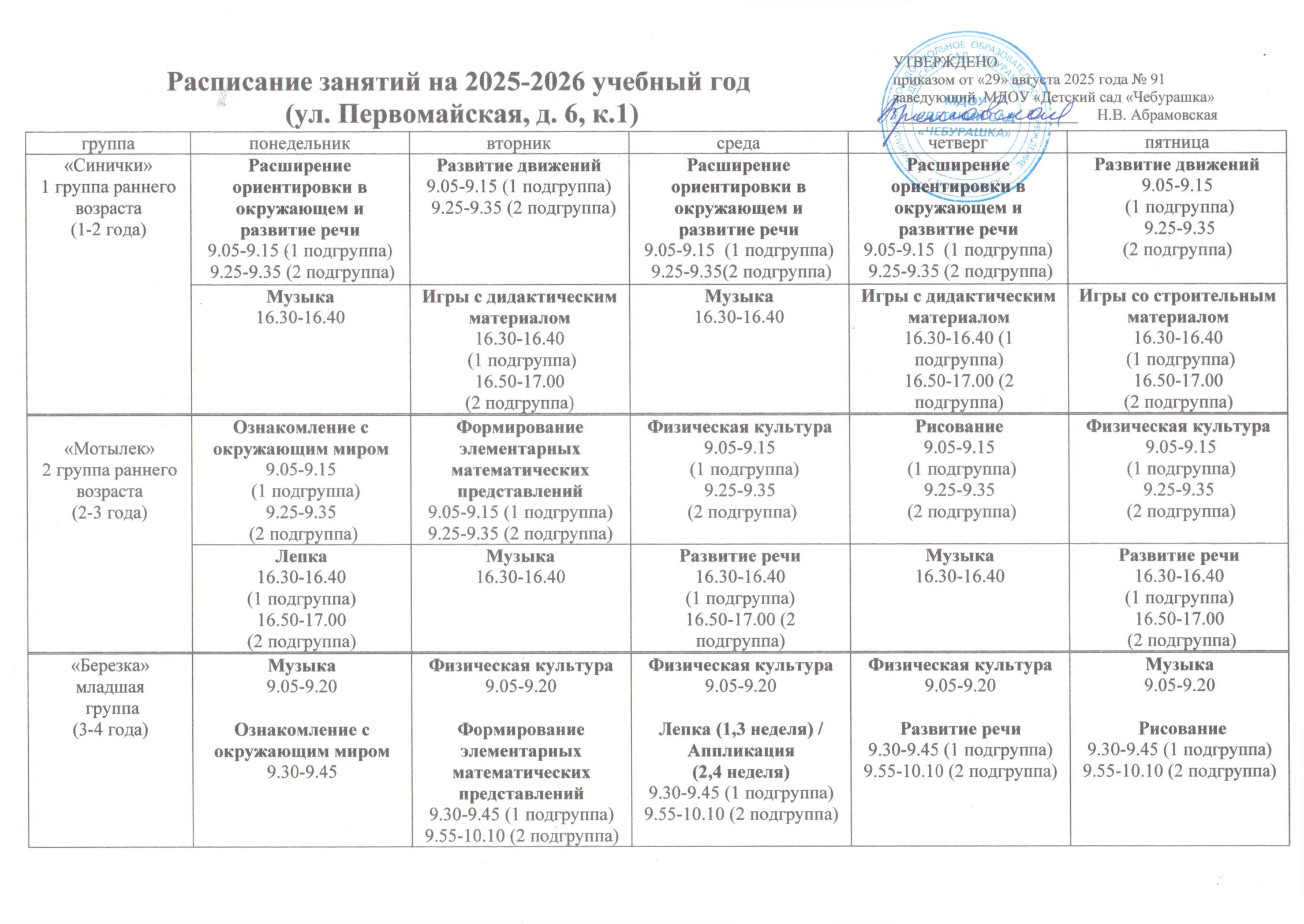 Расписаение занятий на 2025-2026 учебный год (ул. Первомайская, д.6,к.1)