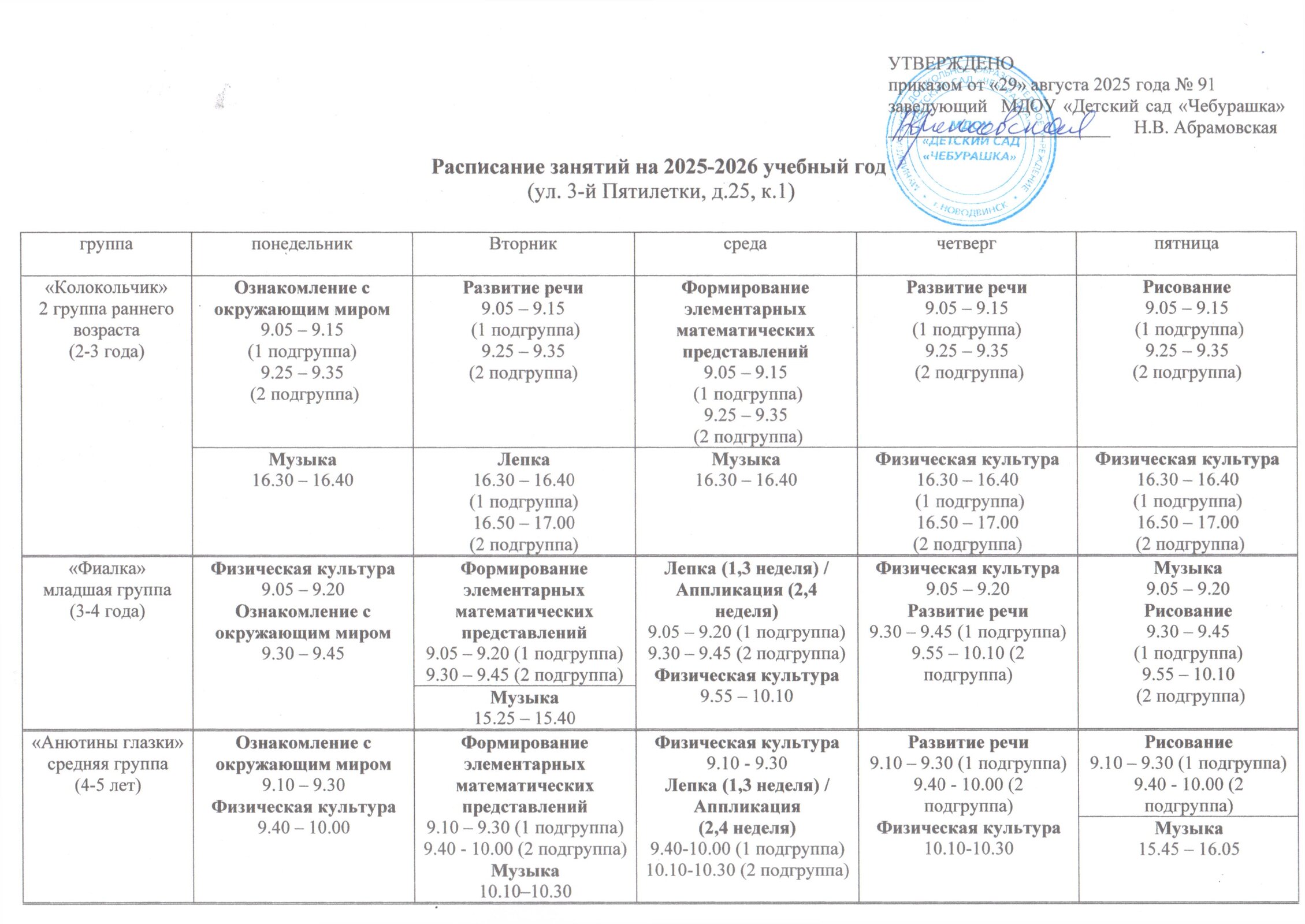 Расписаение занятий на 2025-2026 учебный год (ул. 3-й пятилетки, д.25,к.1)